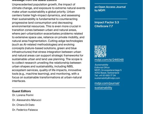 We are pleased to announce our participation as Guest Editors to the Special Issue “Innovative Approaches and Strategies for Sustainable Urban and Regional Planning”, Sustainability. A…